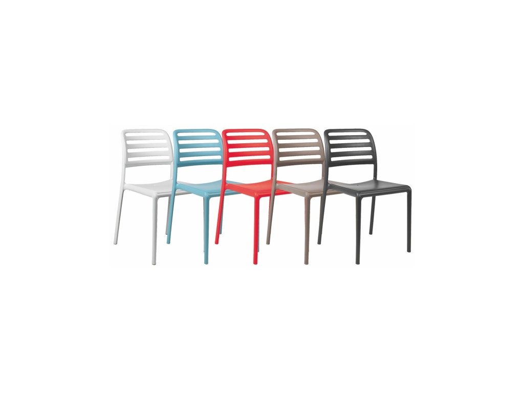 Moderní plastová židle COSTA. Vhodná také do exteriéru. Barevná stálost. Stohovatelná. 6 barev.